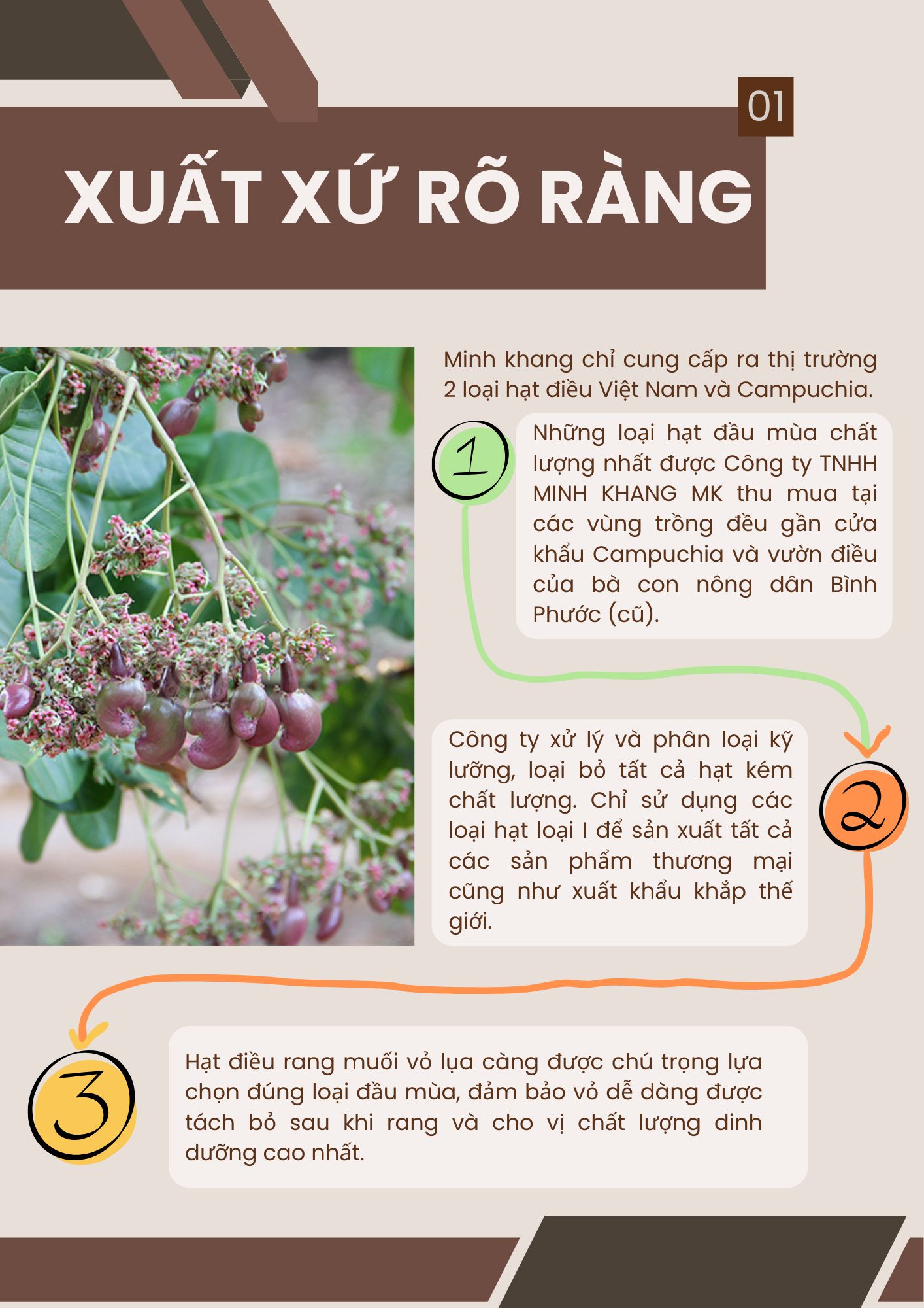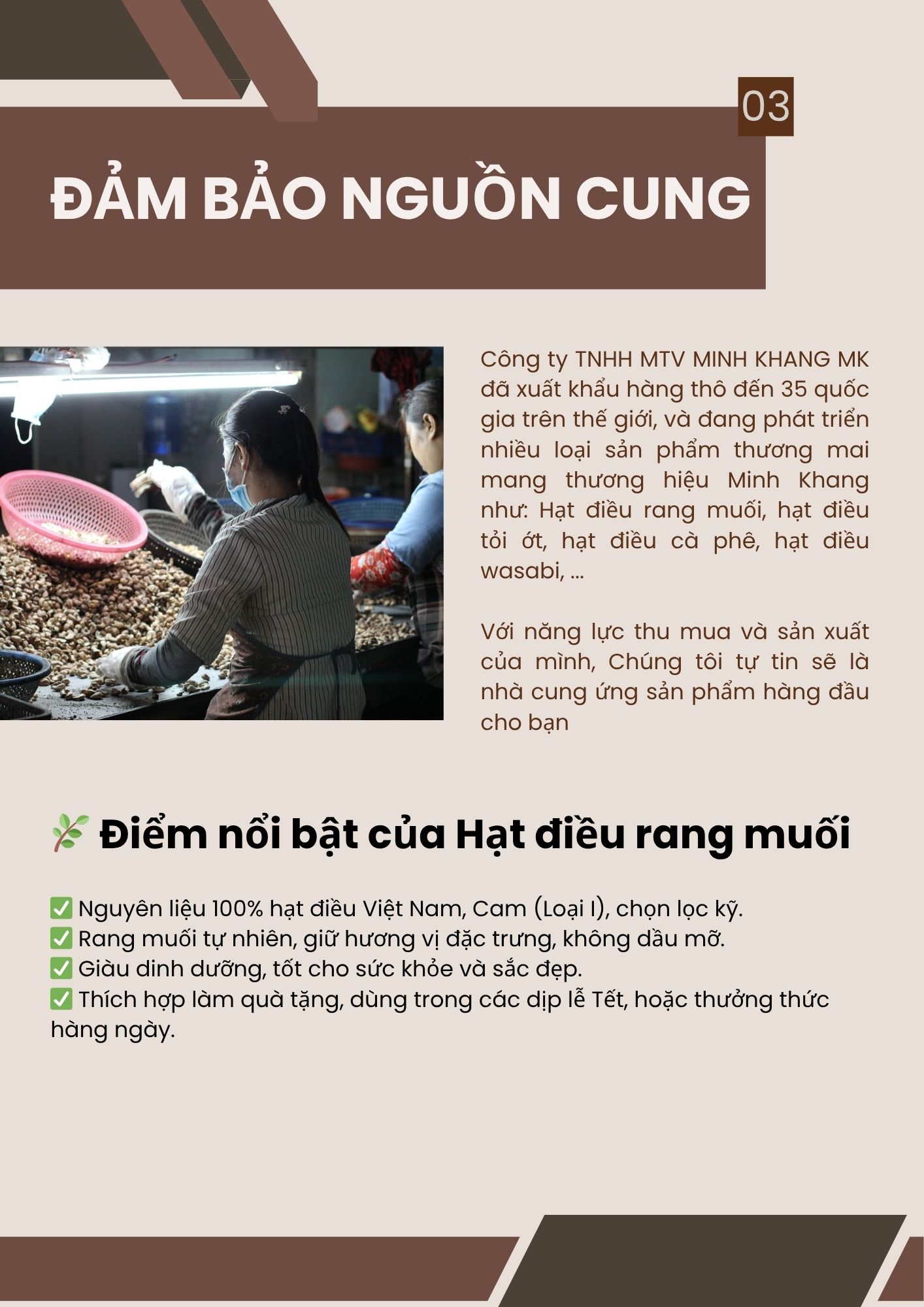Hạt điều Tỏi Phô Mai Minh Khang là sự kết hợp độc đáo giữa vị bùi giòn tự nhiên của hạt điều loại 1 và vị phô mai béo ngậy hòa quyện cùng mùi tỏi thơm lừng. Ngay khi mở nắp, hương phô mai dịu nhẹ lan tỏa cùng lớp bột gia vị phủ đều trên từng hạt tạo nên sức hấp dẫn khó chối từ.