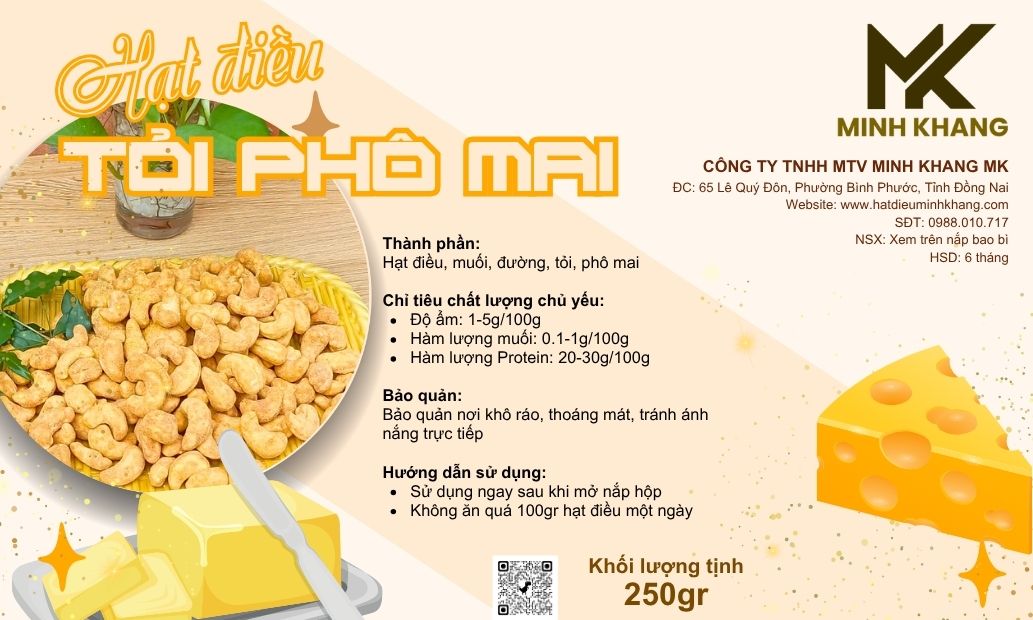 Hạt điều Tỏi Phô Mai Minh Khang được làm từ các thành phần đơn giản nhưng chất lượng cao: