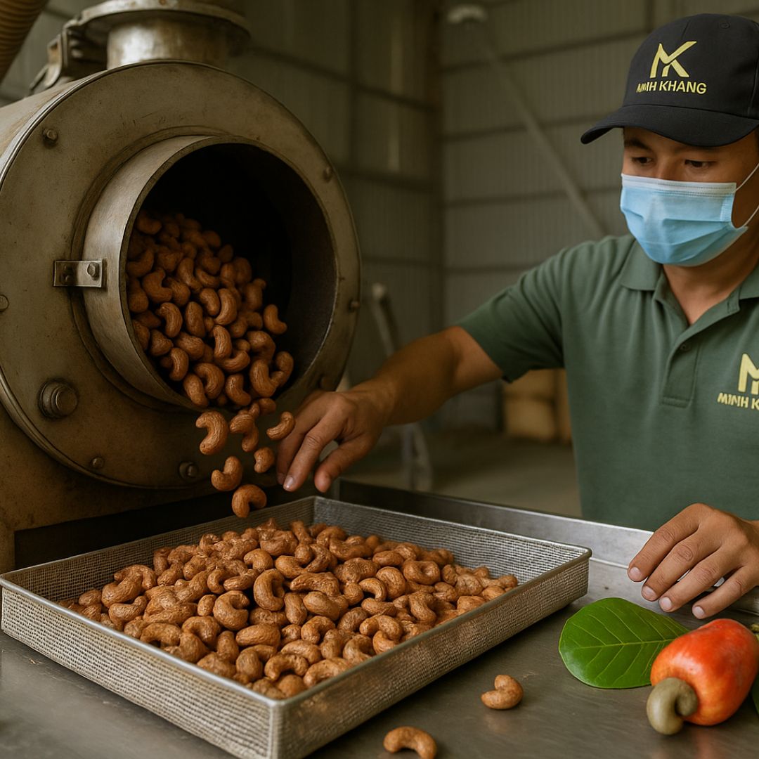 Tại Minh Khang, mỗi hạt điều đều trải qua một quy trình chuẩn mực, được giám sát nghiêm ngặt và áp dụng thiết bị chuyên dụng từ khâu rang sấy đến đóng gói.
